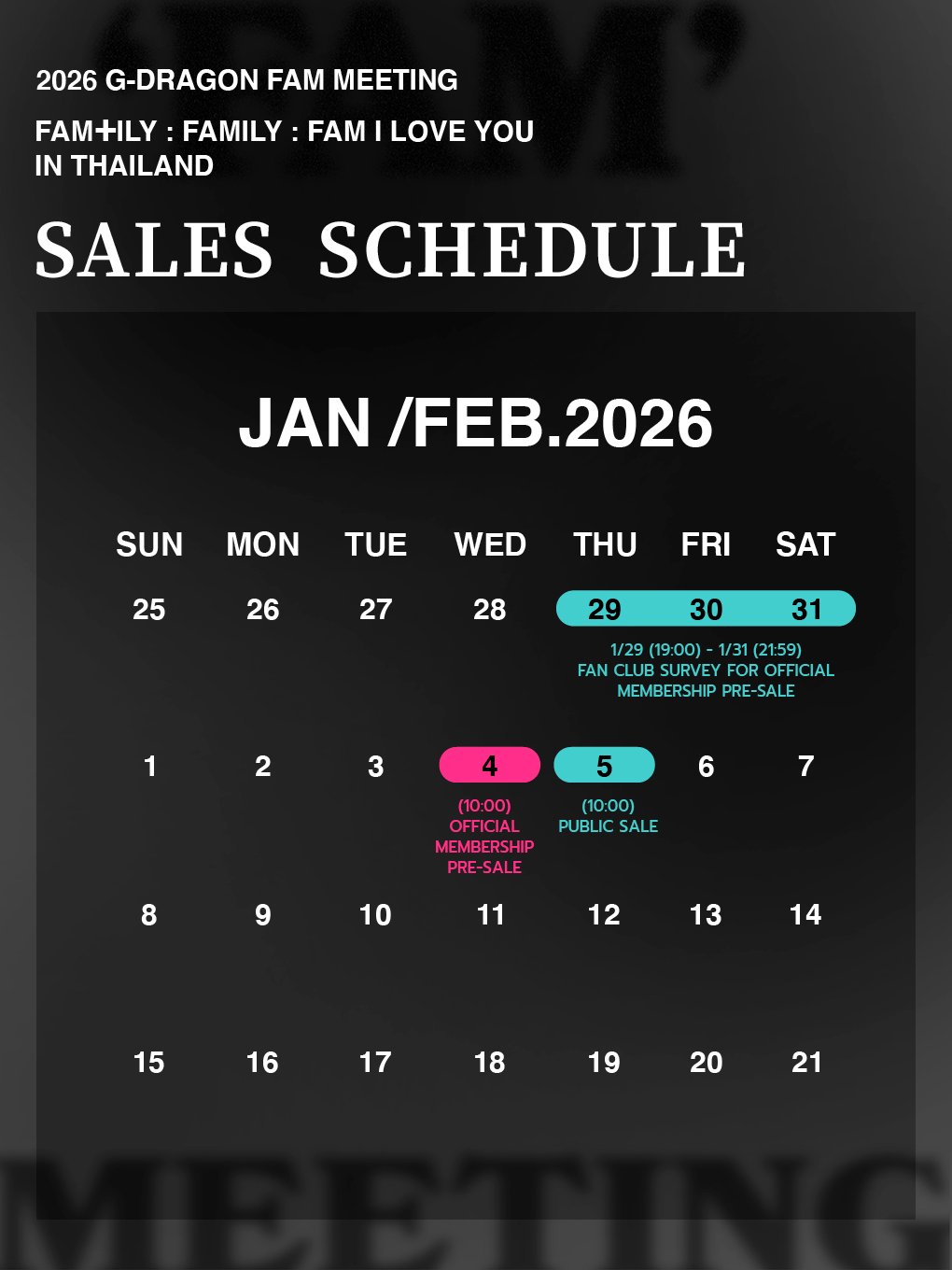 G-DRAGON OFFICIAL MEMBERSHIP TICKET PRE-SALE SURVEY FOR 2026 G-DRAGON 'FAM’ MEETING [FAM+ILY : FAMILY : FAM I LOVE YOU] IN THAILAND
